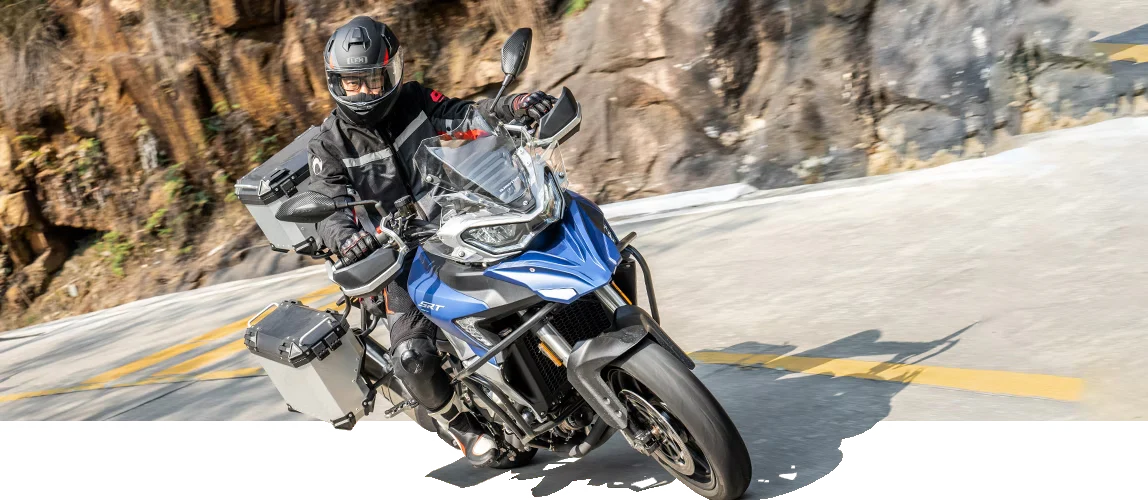 La QJMotor SRT 800SX es una trail de alto rendimiento diseñada para quienes buscan viajar lejos con confianza y estilo. Su potente motor bicilíndrico de 799 cc, junto con suspensiones Marzocchi y frenos Brembo con ABS, ofrecen un manejo estable y preciso en cualquier terreno. Equipada con pantalla TFT, sistema TPMS y conectividad móvil, eleva cada trayecto a una experiencia premium.