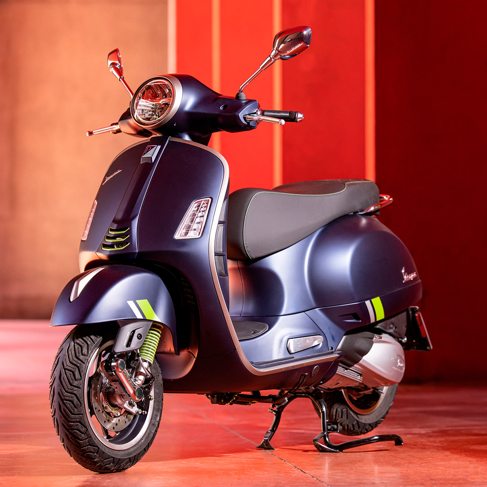 Las últimas tecnologías se encuentran con el diseño atemporal de Vespa entre colores brillantes, materiales y opacos que dan vida a electrizantes juegos de luces y contrastes. Destacan los acabados técnicos en gris cálido y verde fluo, el asiento con materiales de alta calidad y costuras en contraste, el compartimento bajo el asiento iluminado con LED, así como las formas y la atención al detalle que hacen que Vespa sea inimitable.